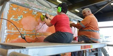 The turbo is in and CL17 is alive! During a special working session at Cootamundra on Saturday 15 April, a new turbo was installed in the locomotive and after 12 years of silence, the EMD 645 engine within was 'kicked in the guts' for the first time in a very long time! Special thanks must go to Paul Proctor for sorting out the electricals, Paul Kemp, Ian Kemp and David Goodie for putting the turbo in, and to Scott Sanders, Pat Gagel and the Southern Shorthaul Railroad team for their generous assistance. With the engine now running, we're now pushing to prepare the car body for painting. Our next Cootamundra working weekend will be Saturday 21 and Sunday 22 May. We will need all hands on deck! If you can sand, weld and assist in preparation work you’ll be very warmly welcomed. The weekend will include barbecue lunches.