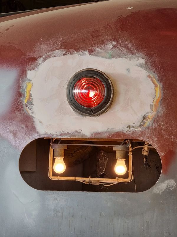 As the late John Clark famously said, "The front fell off!". 6kg of bog has so far been applied to the nose alone, in order to give the iconic nose a smooth curved surface. While the turbo charger is being repaired, the majority of work is focused on the nose, cab and roof. New single marker lights have been made, and will be installed over the coming months.
